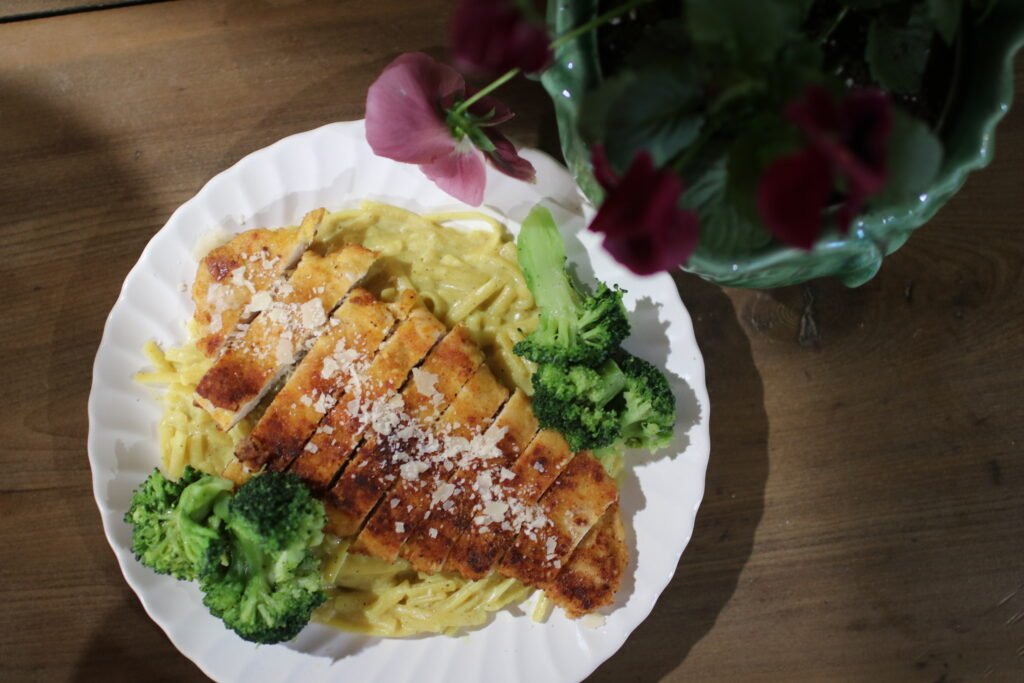 PrintCrispy Parmesan Chicken & Creamy Lemon Pasta