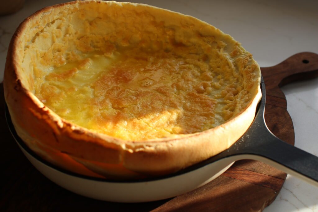 Serve immediately. The pancake will deflate as it cools — this is normal.