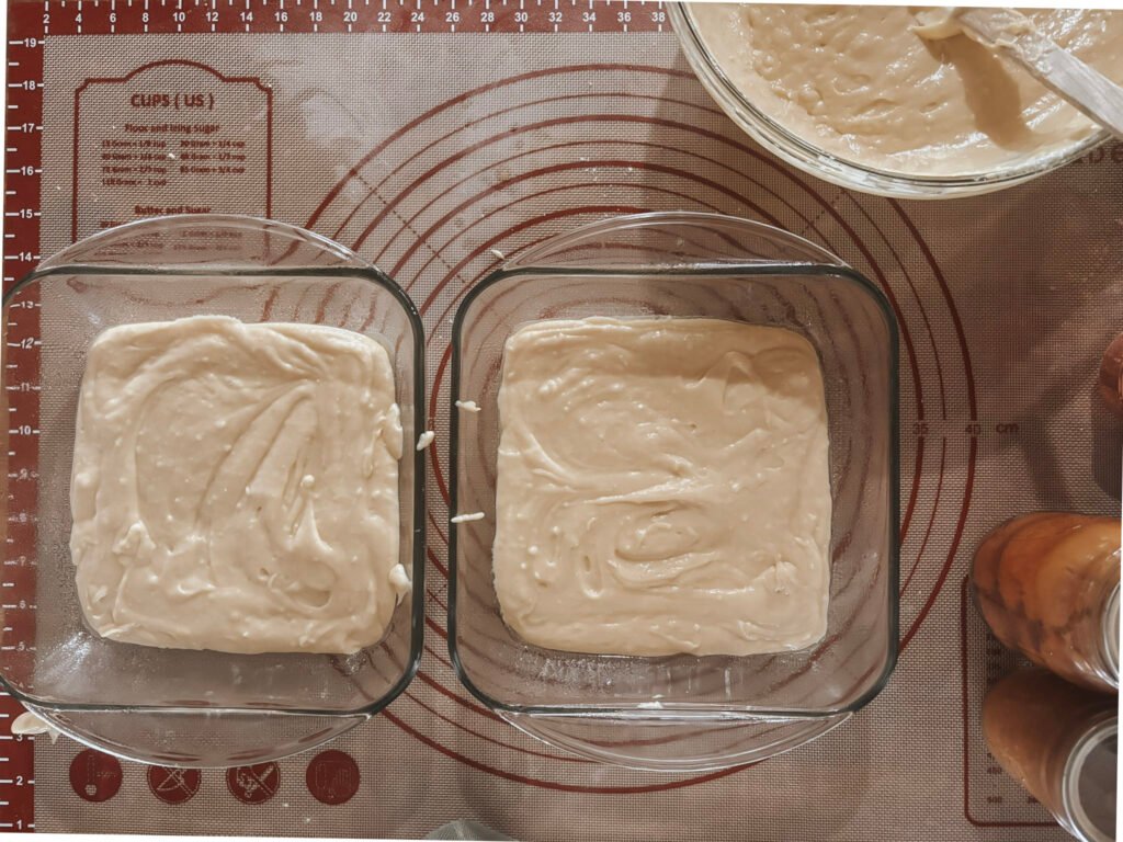 Bake for 25–30 minutes, until a toothpick inserted into the center comes out with moist crumbs but no wet batter. Avoid overbaking, as this cake is best when soft and tender.