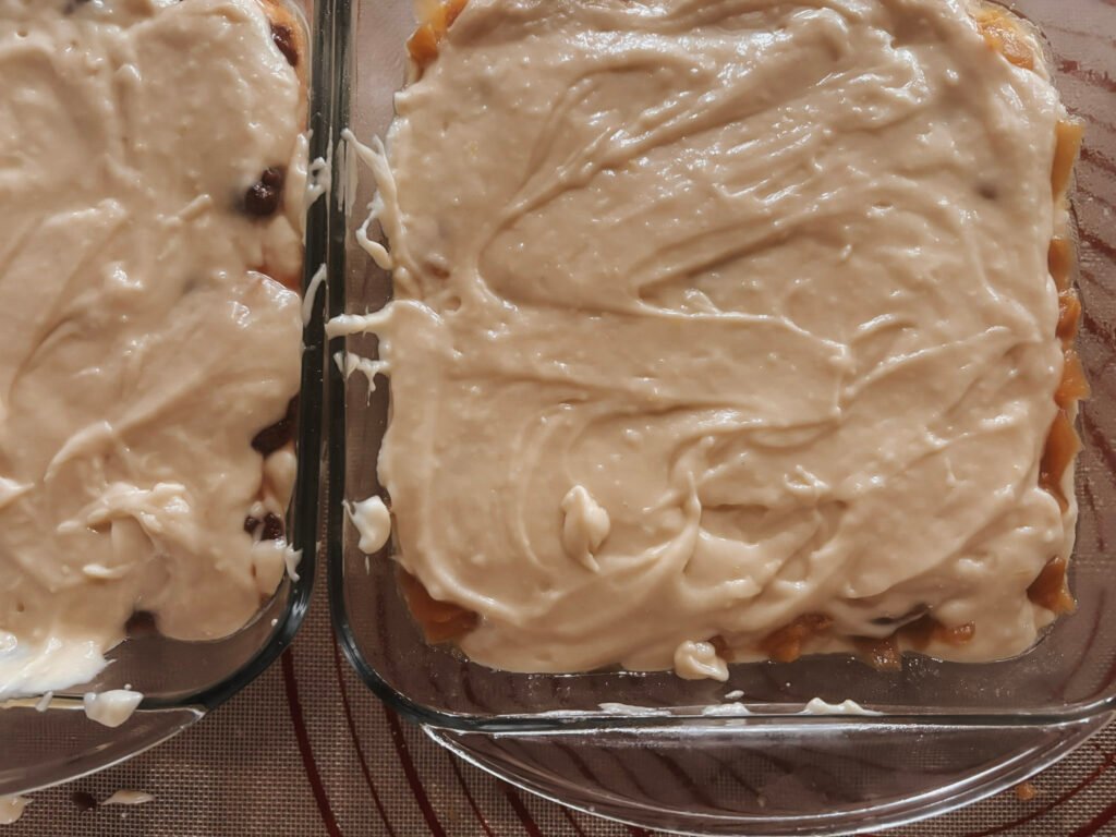 Evenly add your filling of choice and top with the remaining batter.